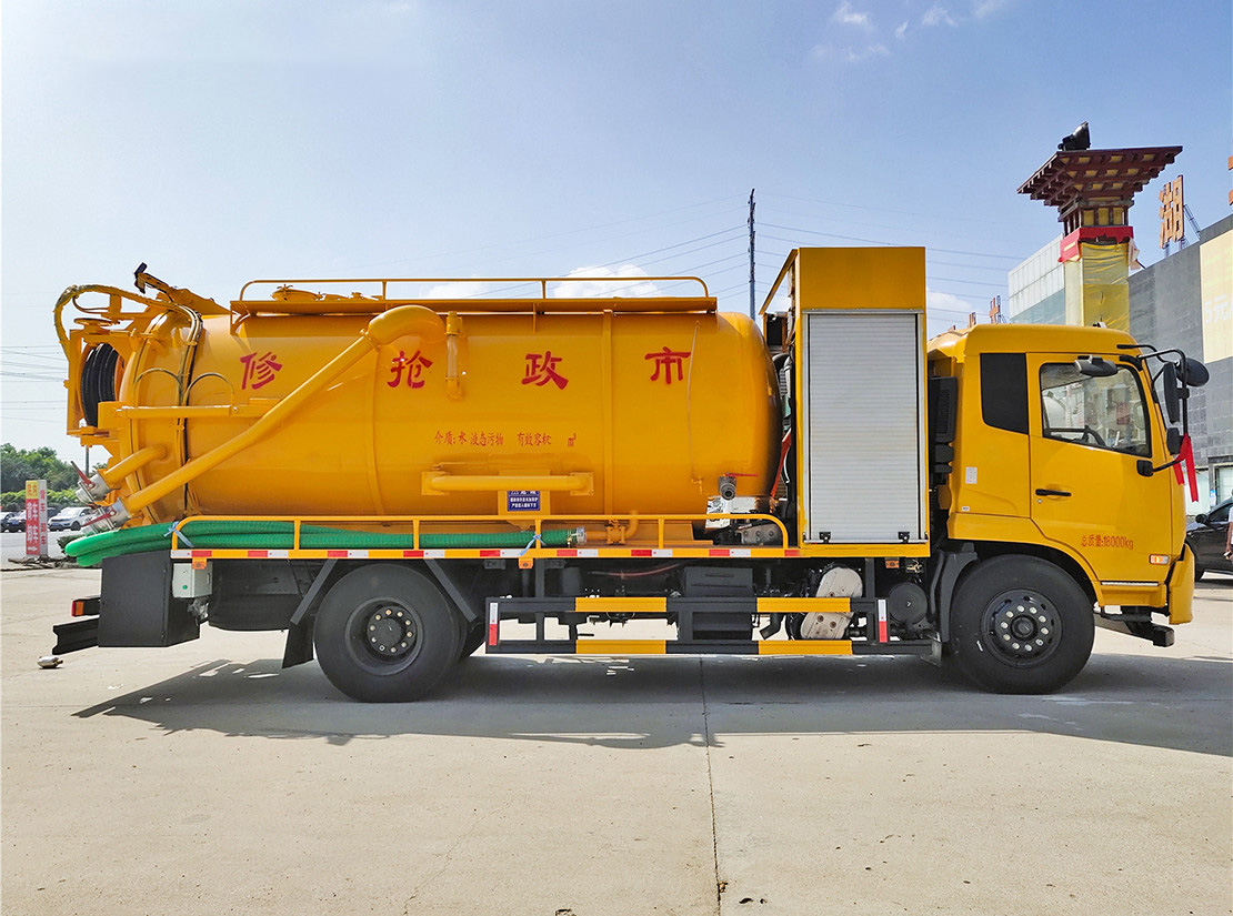 吸污部分:10方污罐,罐體8mmQ235優(yōu)質(zhì)碳鋼,配濰柴375副發(fā)動機帶淄博SK-30水循環(huán)泵,還可以選配羅茨泵。10米吸污管一根,進氣管加過濾網(wǎng),防溢閥加高,后蓋卡扣鎖緊,前視污亮管,后尾部加裝3個力拓牌100mm的球閥吸污口,150mm口徑排污閥,600mm排污口液壓開啟,罐體帶舉升功能,尾部后蓋可液壓開啟。